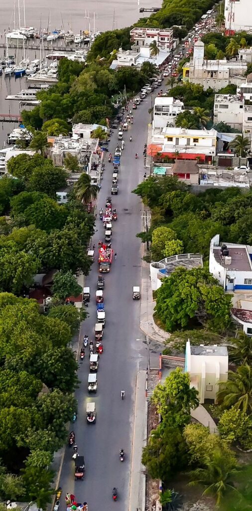 Encabezado por la Presidenta Municipal, Atenea Gómez Ricalde y bajo la coordinación de la Dirección de Cultura, la colorida caravana partió puntualmente desde la Secundaria Técnica número 1 “Benito Juárez”, congregando a numerosas familias isleñas que se sumaron a la celebración navideña.