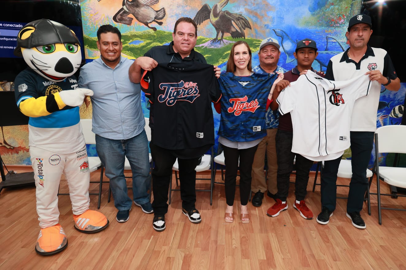 En la conferencia de prensa estuvieron presentes además, Alejando Medina Solís , coordinador deportivo del Club Los Tigres de Quintana Roo, la mascota del equipo, “Chacho”,