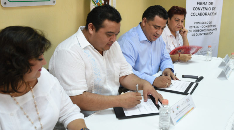 Chetumal, Quintana Roo. – Para promover una cultura de respeto a los derechos humanos entre el personal del Congreso del Estado, la XV Legislatura y la Comisión de los Derechos Humanos del Estado de Quintana Roo (CDHEQROO) firmaron un convenio de colaboración en materia de capacitación, a través del cual se promoverán actividades académicas, conferencias y talleres.