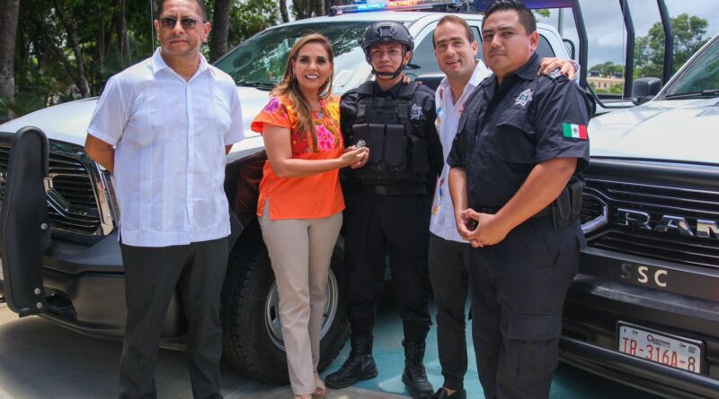 Tulum.- En un contundente paso hacia la construcción de la paz y la seguridad en el municipio de Tulum, la gobernadora Mara Lezama Espinosa entregó al Ayuntamiento que encabeza el presidente municipal Diego Castañón Trejo lideró 14 vehículos tipo patrulla.