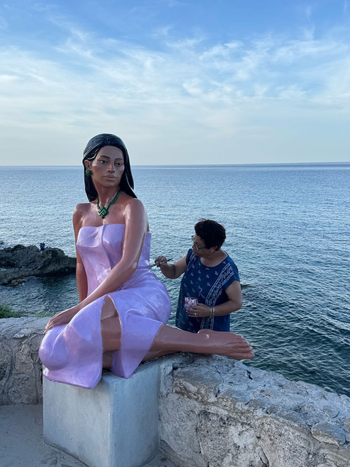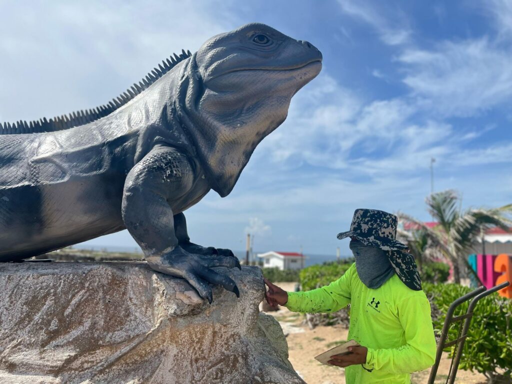 Gobierno de Isla Mujeres da mantenimiento a las esculturas de Punta Sur