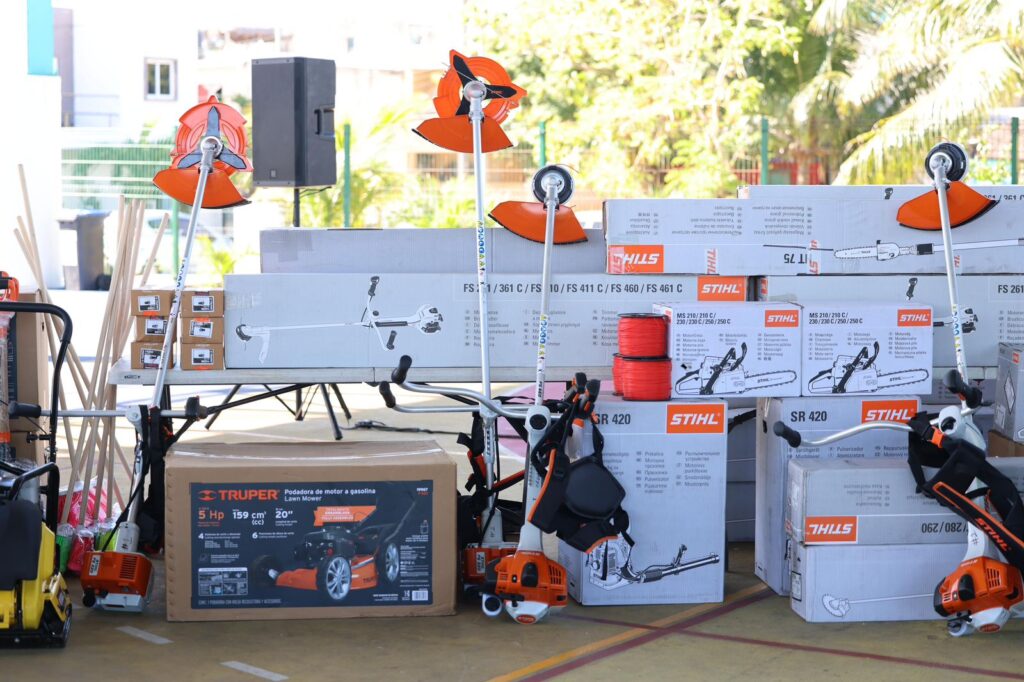 Además de la entrega de luminarias nuevas y modernas, las cuales eran muy necesarias, también se otorgaron 20 desbrozadoras, tres motosierras, carretillas, una fumigadora y una podadora con motor de gasolina para que el personal realice sus labores de manera más eficiente.
