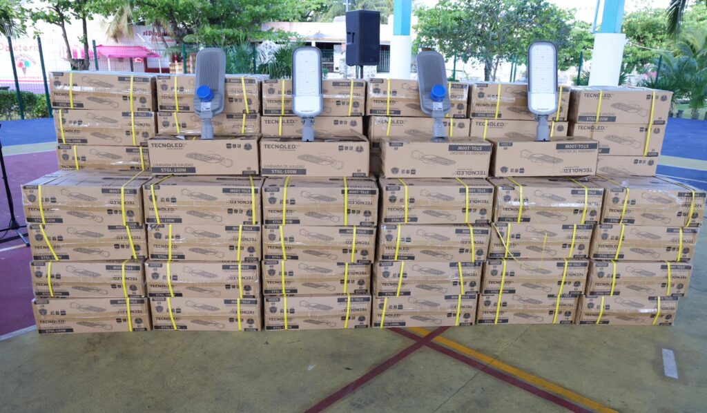 Asimismo, se proporcionaron 300 luminarias LED que serán destinadas a un stock para atender reportes tanto en la ínsula y Zona Continental, con lo que se reforzará la seguridad, además de que el municipio lucirá más bonito e iluminado en beneficio de las familias isleñas y los miles de turistas que lo visitan a diario.