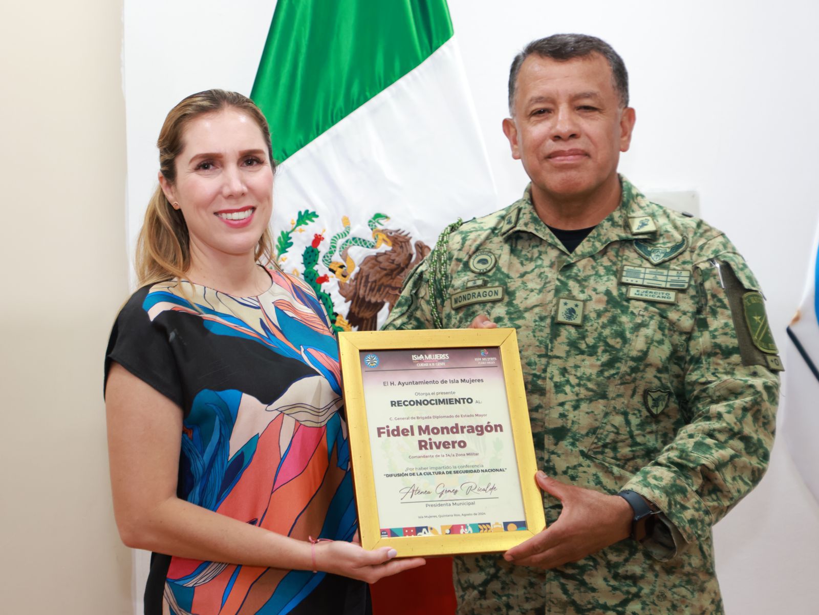 Isla Mujeres, Quintana Roo, 21 de agosto de 2024.-Con el firme compromiso de promover la importancia de la Seguridad Nacional, el Gobierno Municipal que encabeza la alcaldesa Atenea Gómez Ricalde, a través de la Secretaría General del Ayuntamiento, en coordinación con la Secretaría de la Defensa Nacional (SEDENA), impartió la conferencia “Difusión de la Cultura de Seguridad Pública”, en la Sala de Cabildo.