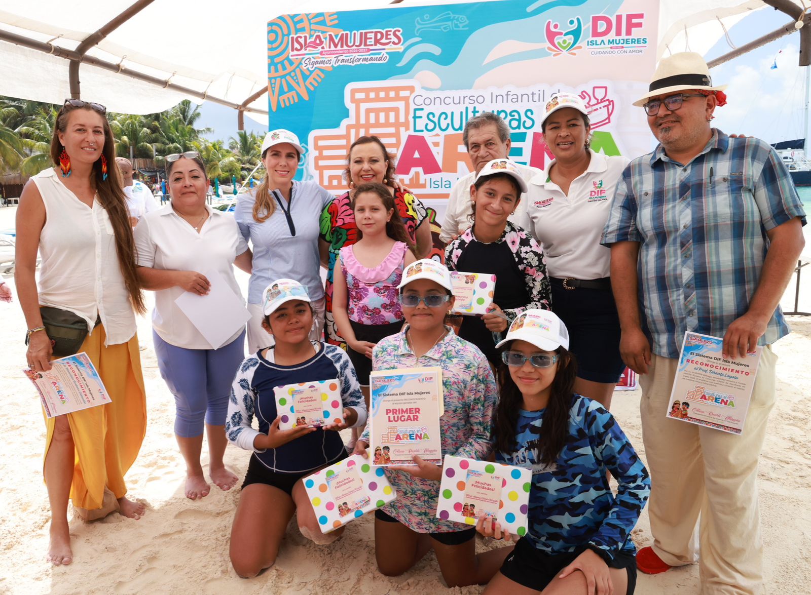 Los equipos ganadores fueron M y M’s, primer lugar, Los Hijos de Kukulcán, Segundo Lugar y Moons Son, tercer lugar; además, el equipo gabador representará con orgullo a Isla Mujeres en el Concurso Estatal de Esculturas de Arena organizado por el Sistema DIF Quintana Roo.