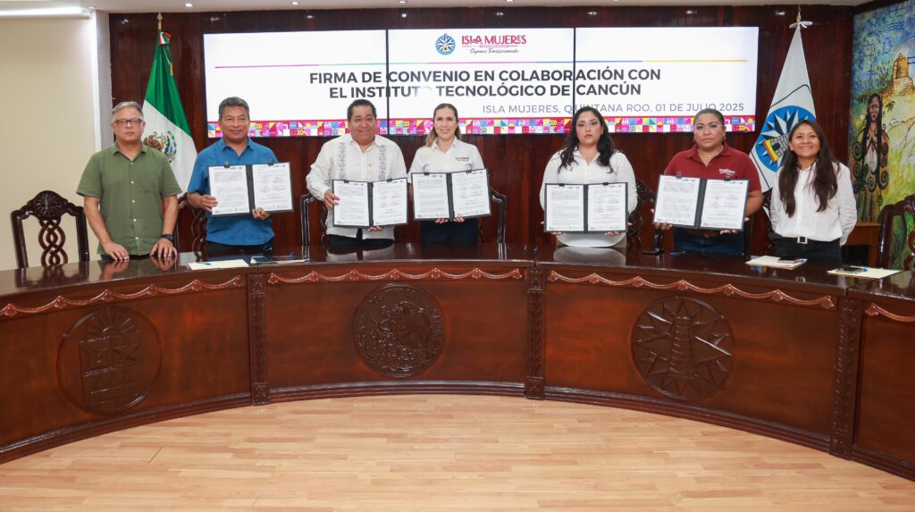 Isla Mujeres, Quintana Roo a 01 de julio de 2025.-Con la finalidad de generar un vínculo entre las y los estudiantes y el Ayuntamiento de Isla Mujeres, el Gobierno Municipal que encabeza la alcaldesa Atenea Gómez Ricalde, firmó un convenio de colaboración con el Instituto Tecnológico de Cancún.