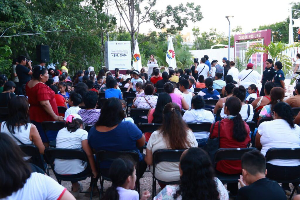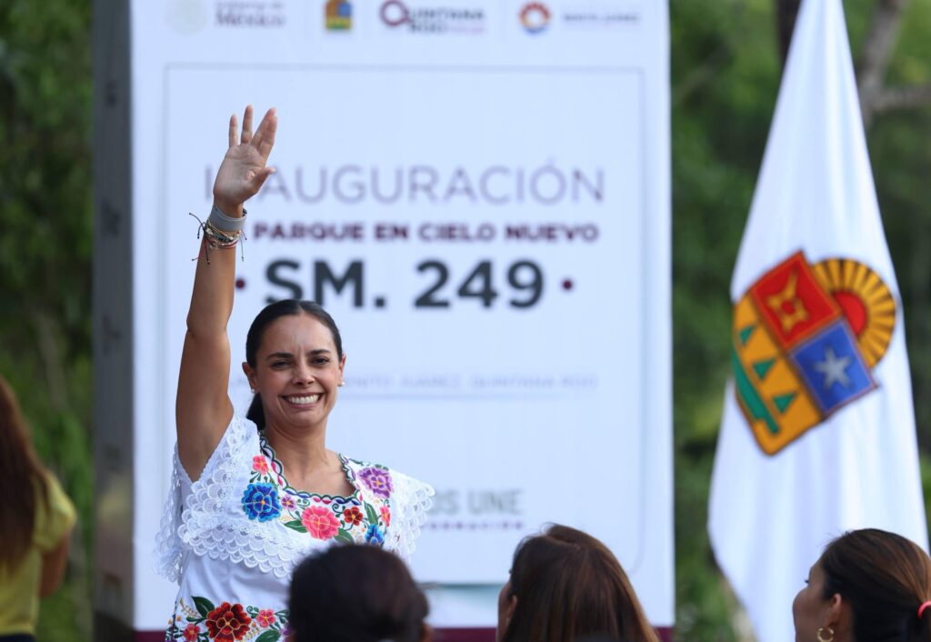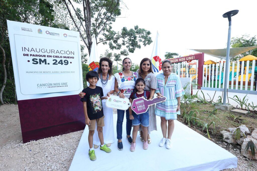 Cancún, Q. R., a 02 de septiembre de 2025.- Con la develación de una placa conmemorativa y cumpliendo con el compromiso de recuperar espacios públicos, la Presidenta Municipal, Ana Paty Peralta, junto a la titular del Sistema DIF Quintana Roo, Verónica Lezama Espinosa, inauguró el Parque Cielo Nuevo, en la Supermanzana 249, un proyecto que beneficiará a 5 mil 328 habitantes de la zona, mejorando su calidad de vida, la percepción de seguridad y la imagen urbana.