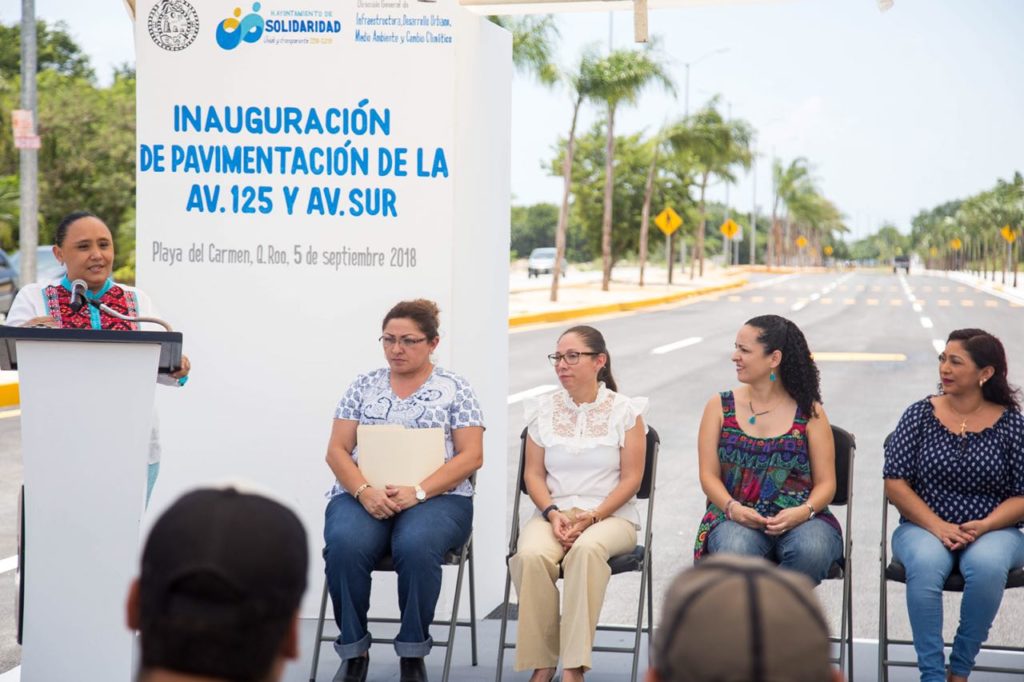 La Presidenta Municipal de Solidaridad, Cristina Torres Gómez, en compañía de representantes del sector empresarial local, inauguró la avenida 125 norte entre las avenidas 38 y Sur, al poniente de Playa del Carmen, la cual beneficiará a más de 20 mil usuarios diariamente.