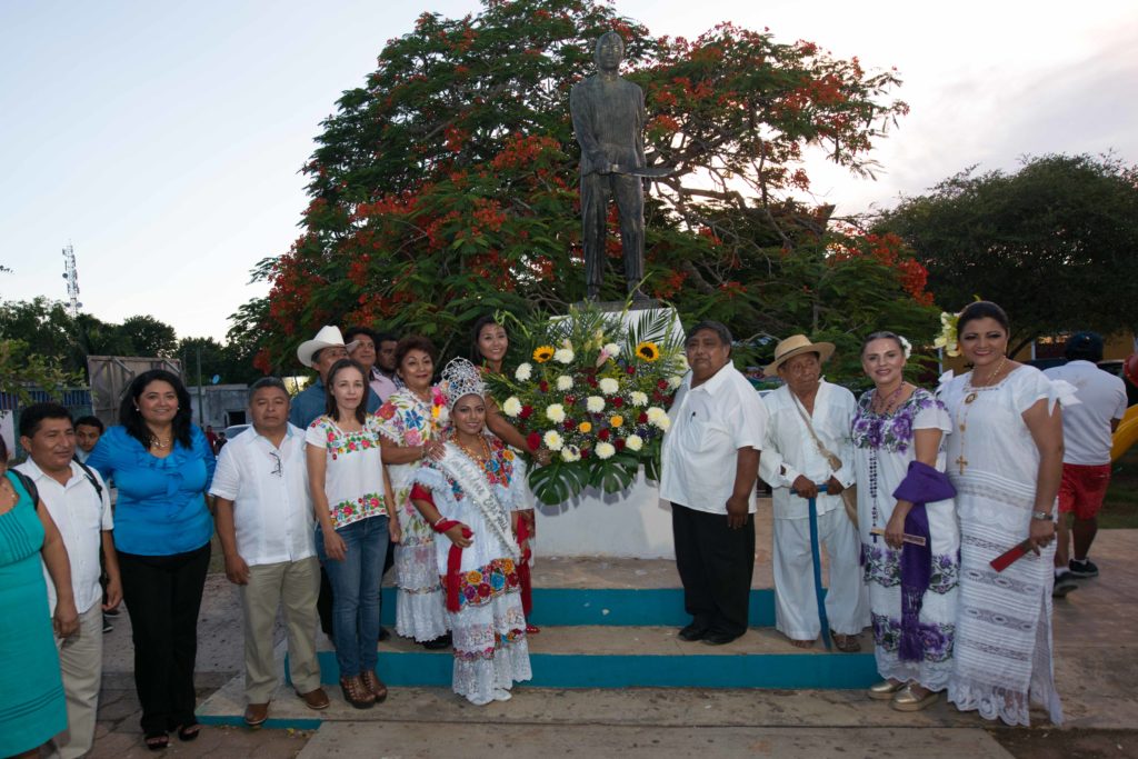Las diputadas Gabriela Angulo Sauri, Yamina Rosado Ibarra, Teresa Sonia López Cardiel y el diputado Luis Ernesto Mis Balam, asistieron a la inauguración oficial de las actividades conmemorativas, las cuales iniciaron con una ofrenda floral en el monumento al caudillo maya Jacinto Pat.