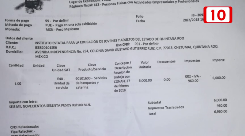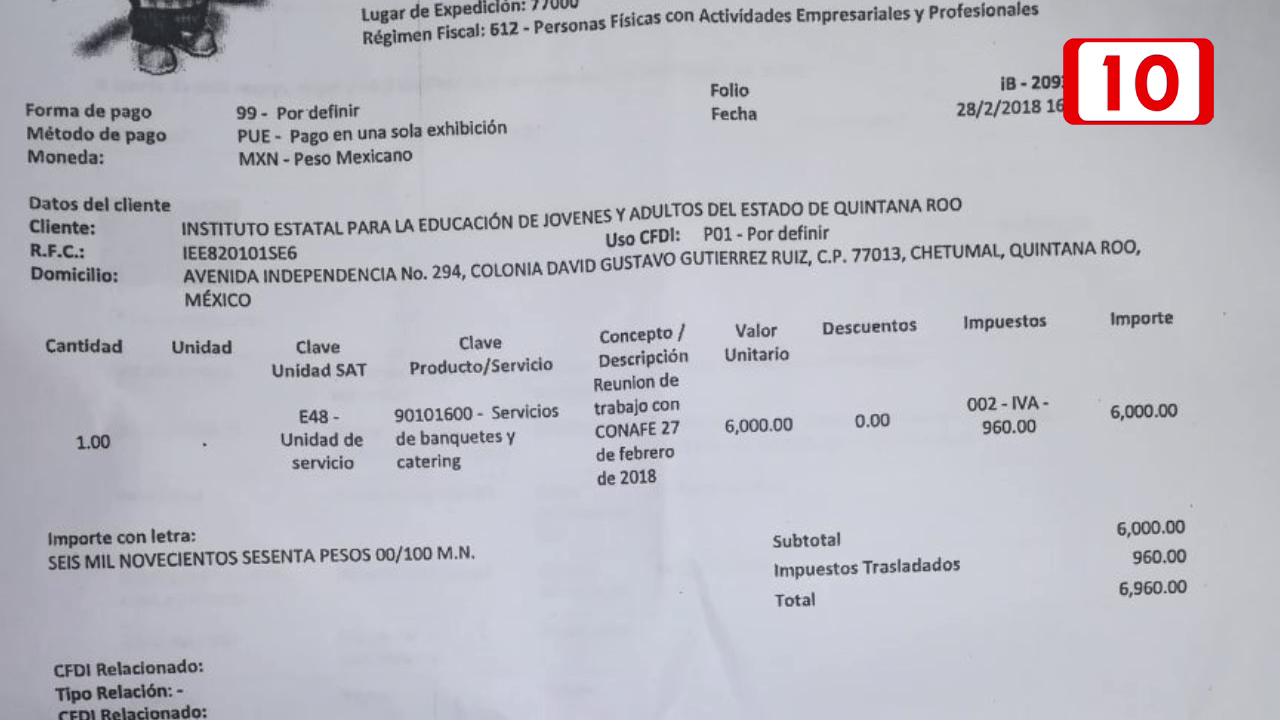 Con documentos otorgados por los trabajadores inconformes se observa este servicio para una reunión con personal del CONAFE en el mes de febrero donde tomaron café diez personas y que s e facturoa un costo de 7 mil pesos.