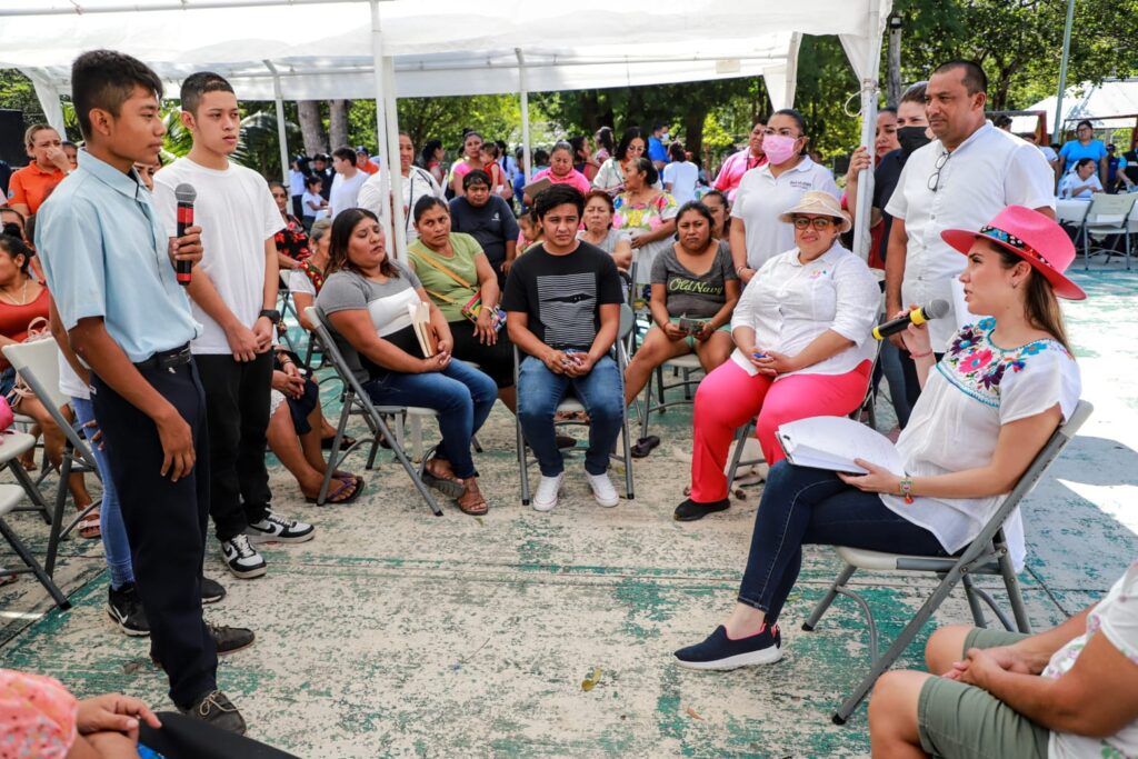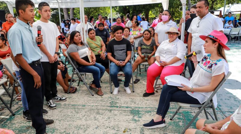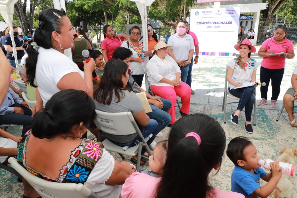 Isla Mujeres, Quintana Roo, 6 de noviembre de 2022.- Durante su visita a Francisco May en la zona continental del municipio, la presidenta municipal de Isla Mujeres, Atenea Gómez Ricalde, instaló el primer comité vecinal.