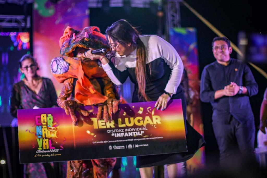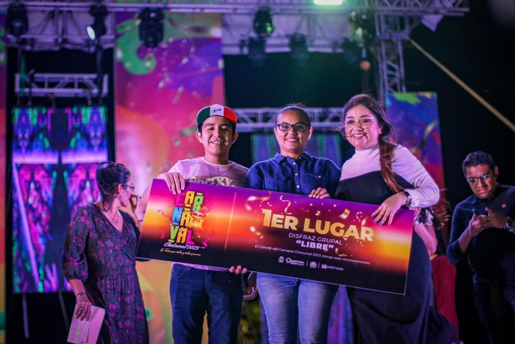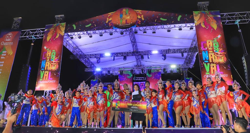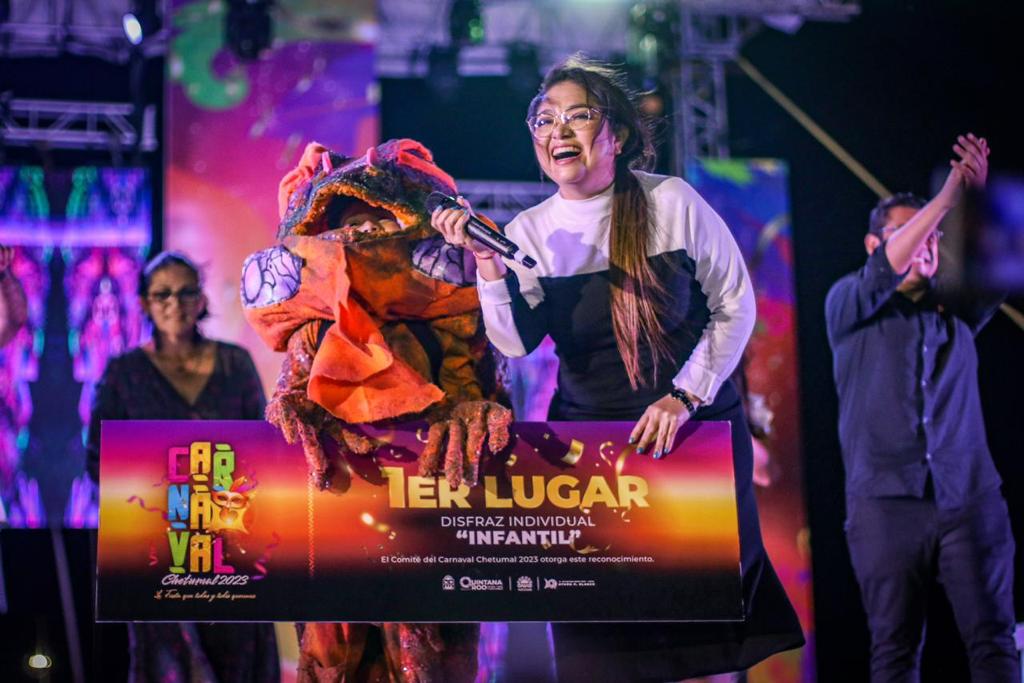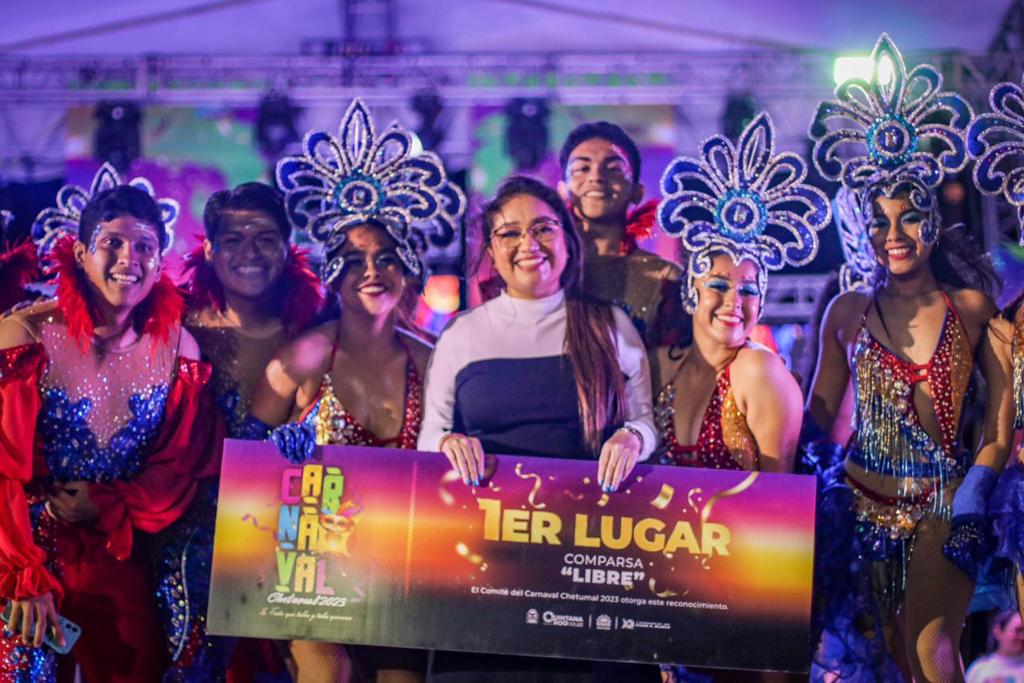 Chetumal, Q. Roo, a 21 de febrero.- “Este Carnaval es gracias a ustedes, gracias a todas y todos los que participaron. Muchísimas gracias porque sin ustedes, esto no hubiese sido posible; sin las comparsas, sin los participantes en categorías infantiles, libre, disfraces, coreógrafos, costureras, modistas, diseñadores, mil gracias por participar y por creer en esta fiesta que organizamos con muchísimo cariño y muchísimo amor”, indicó la presidenta municipal de Othón P. Blanco, Yensunni Martínez Hernández, durante la premiación del Carnaval Chetumal 2023.