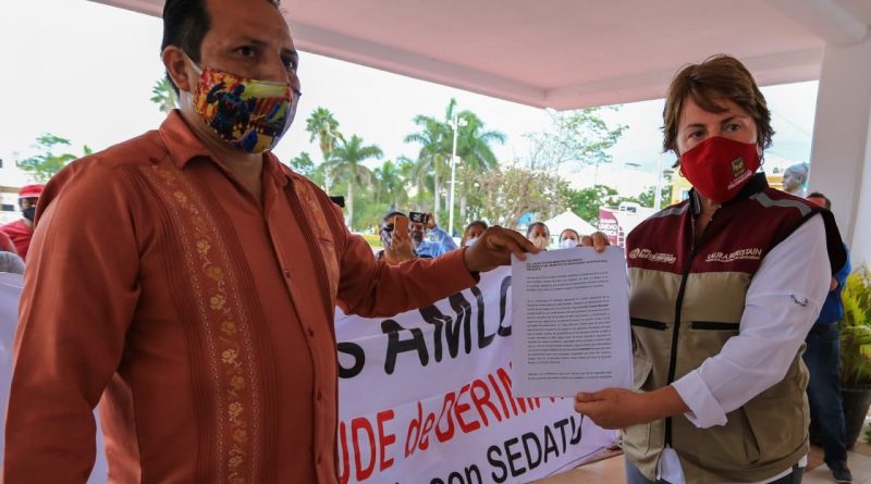 La edil solidarense recibió de manos del representante de los manifestantes, Raúl Segura Trinidad, una carta dirigida al presidente de México, en el que agradecen su apoyo en el proceso de la regularización de esta colonia anunciada en octubre del año 2020.