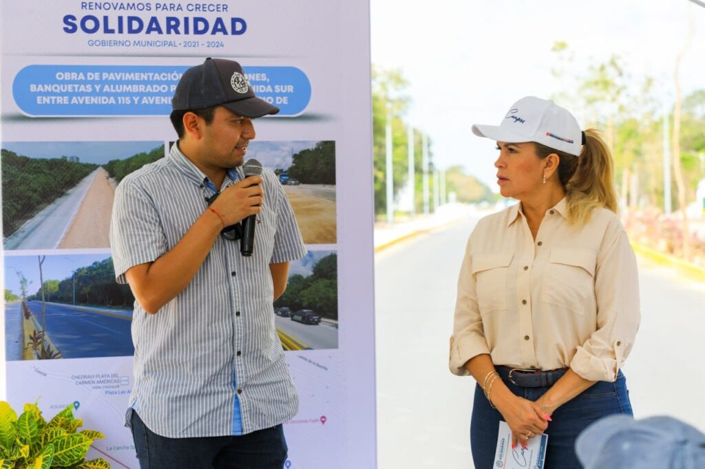 Playa del Carmen, Solidaridad, 1 de febrero del 2023.- Como parte de las acciones para renovar las vialidades de Solidaridad, la presidenta municipal Lili Campos entregó la obra de pavimentación de la Avenida Sur entre avenida 115 y avenida 75, en la que se invirtieron más de 17 millones de pesos, con beneficio directa e indirectamente de los más de 333 mil habitantes del municipio.