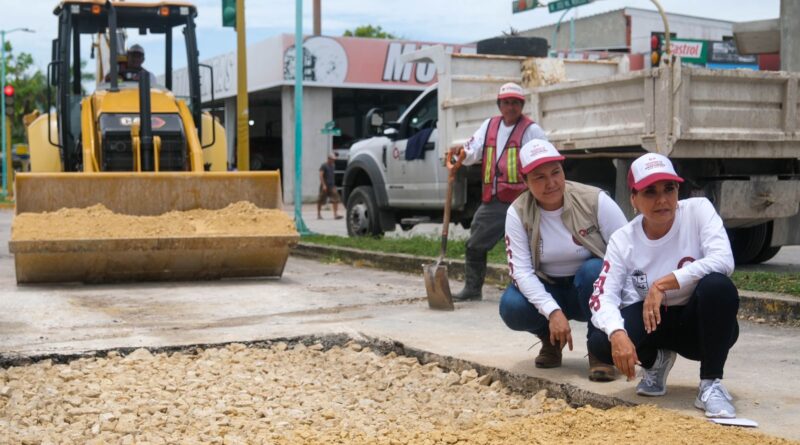 Mara Lezama supervisa trabajos de atención a desfondes en Chetumal