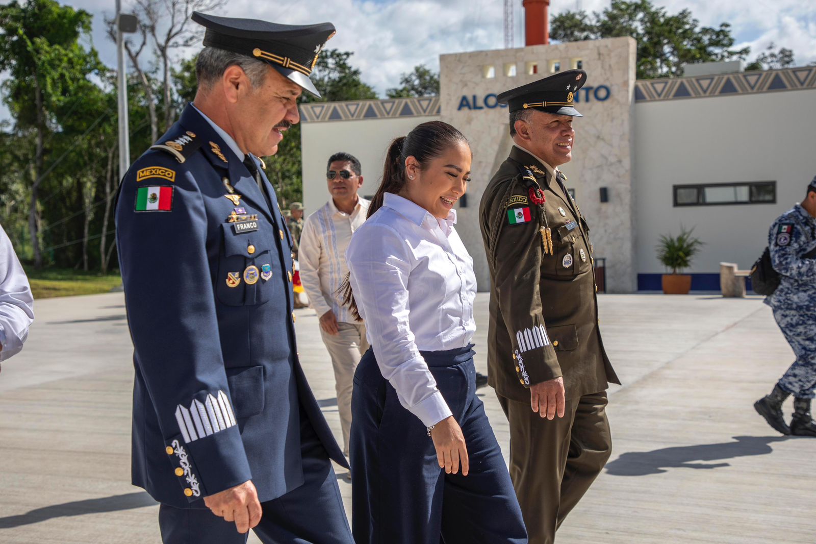 En su mensaje, Mary Hernández expresó su reconocimiento a la labor que realiza la Secretaría de la Defensa Nacional (SEDENA) en el municipio maya y subrayó la importancia de la Base Aérea Militar Número 20 como un pilar de la seguridad en la región maya.
