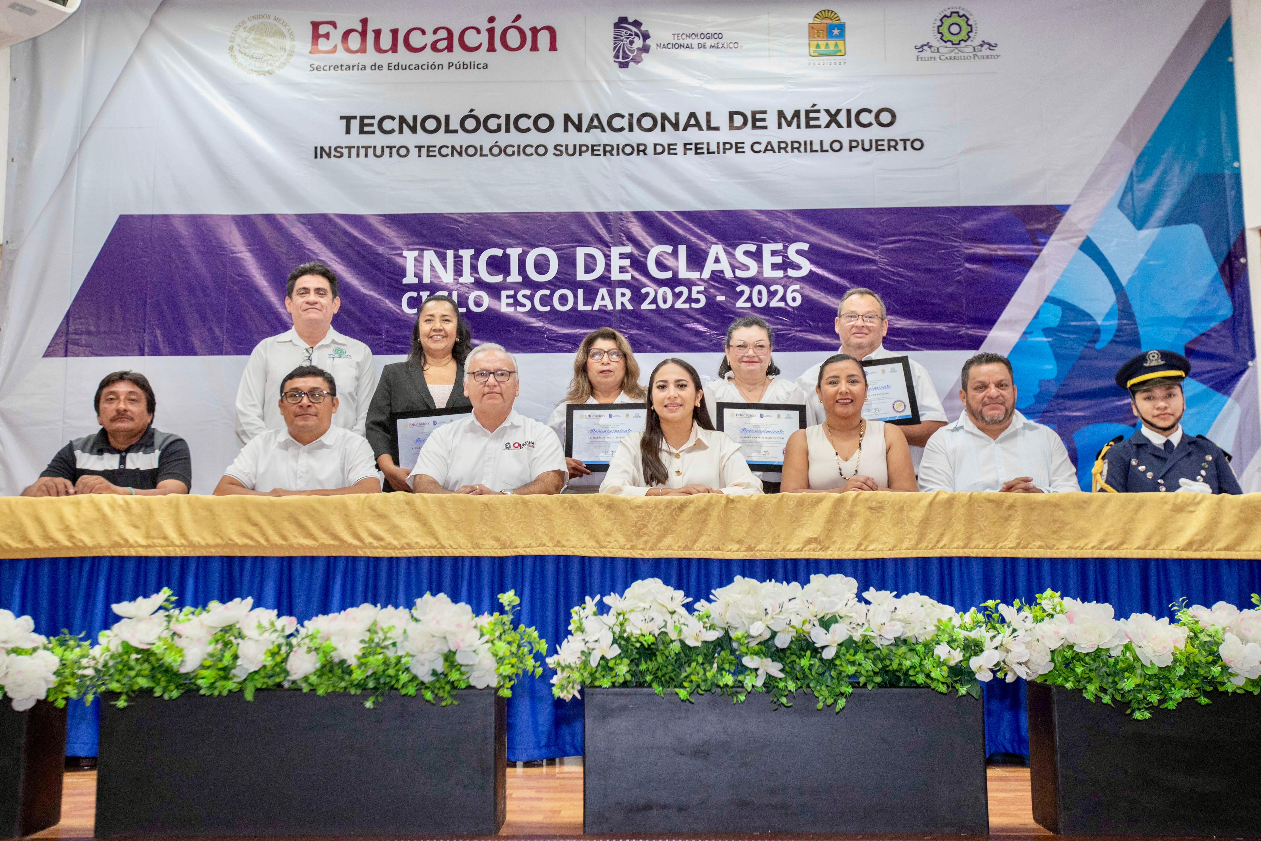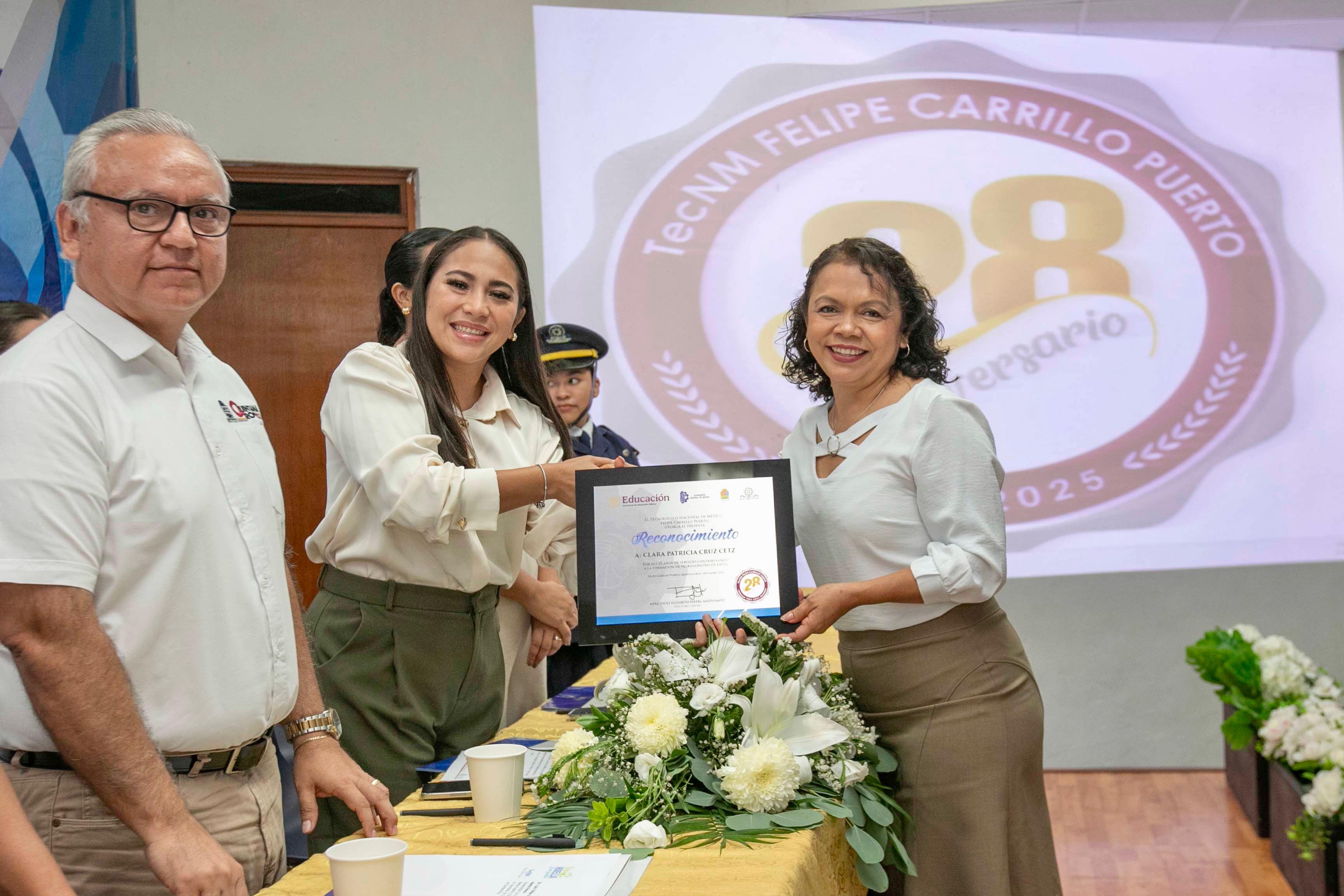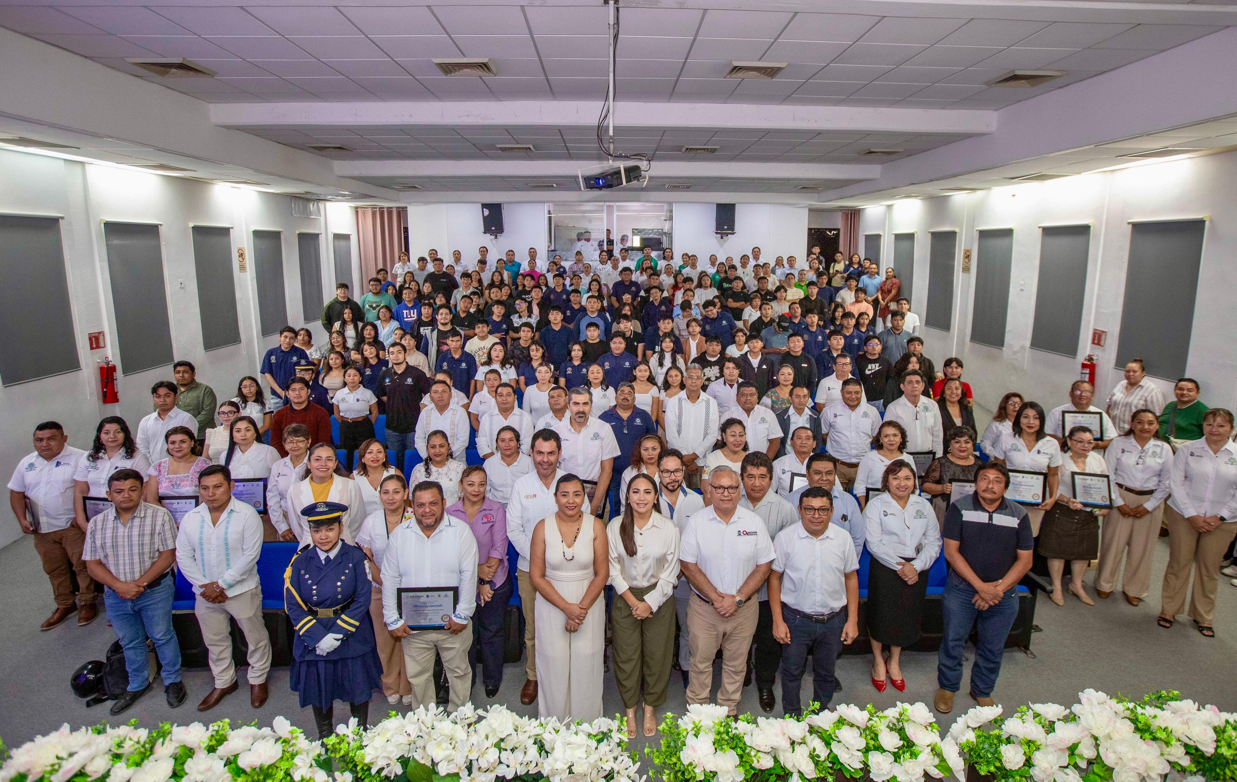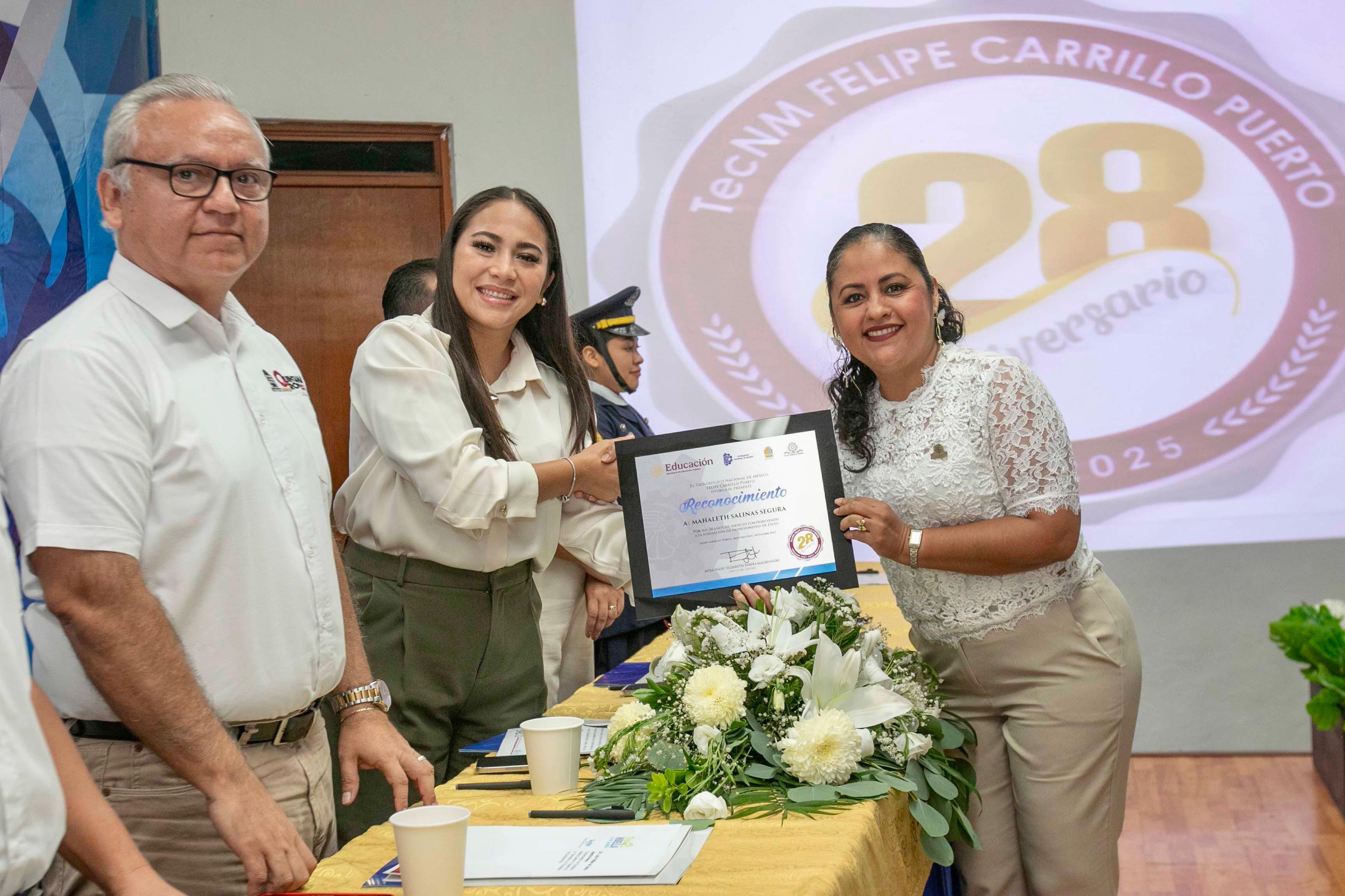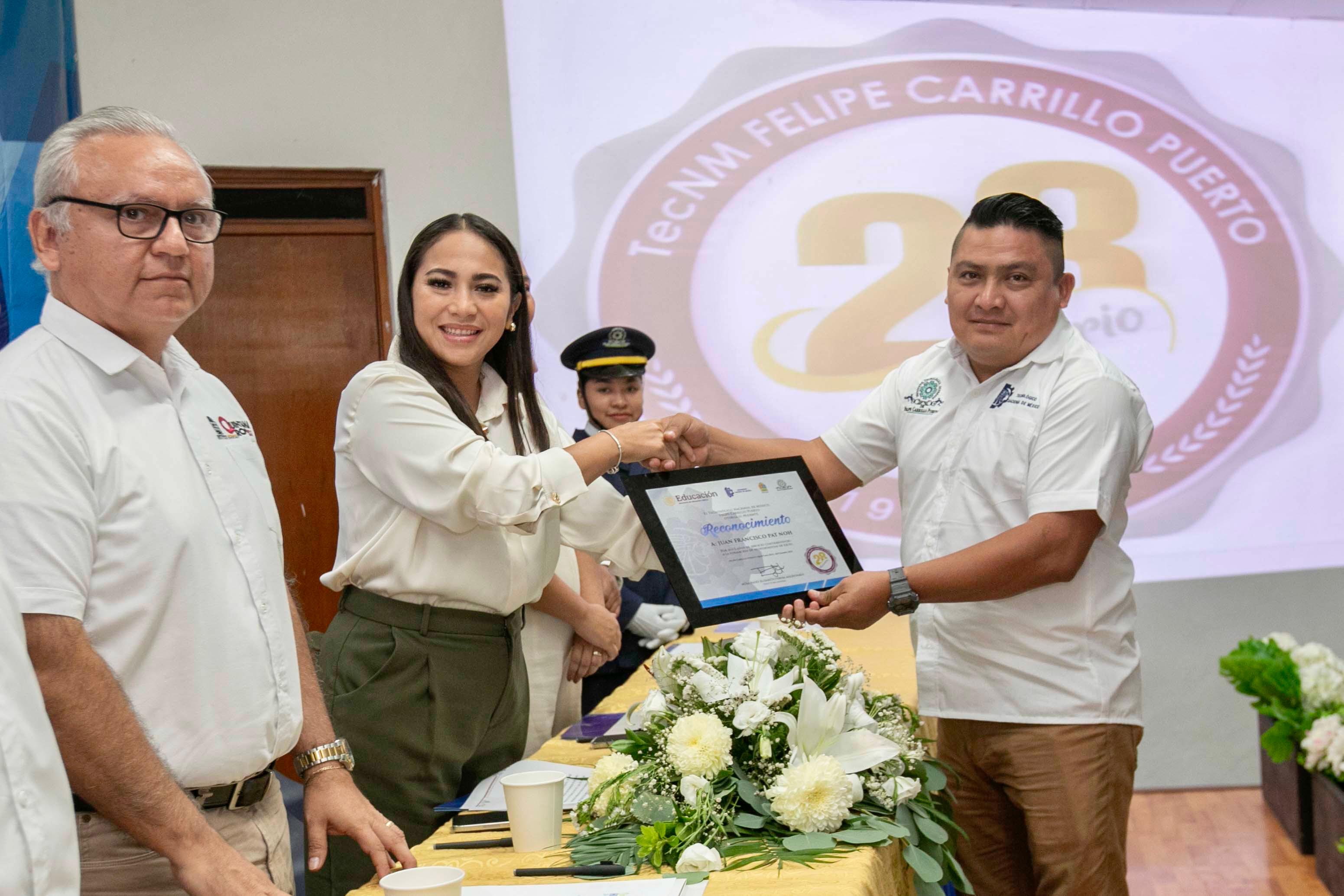 Acompañada de Luis Felipe Martín Pérez, Subsecretario de Educación Media Superior de la Secretaría de Educación del Estado, en representación de la secretaria de educación y de la gobernadora Mara Lezama, Mary Hernández dijo que el Tecnológico de Felipe Carrillo Puerto ha alcanzado importantes reconocimientos gracias a grandes logros alcanzados por talentosos alumnos que han egresado de esta importante institución educativa.