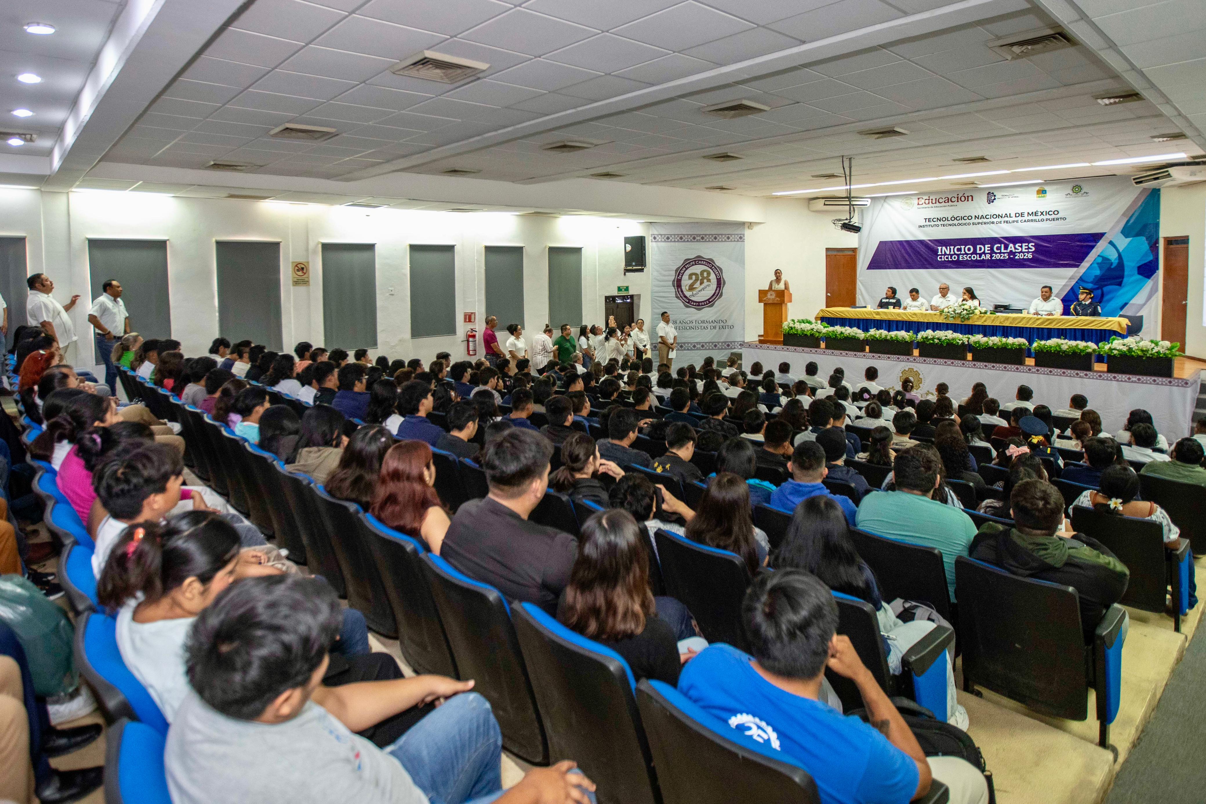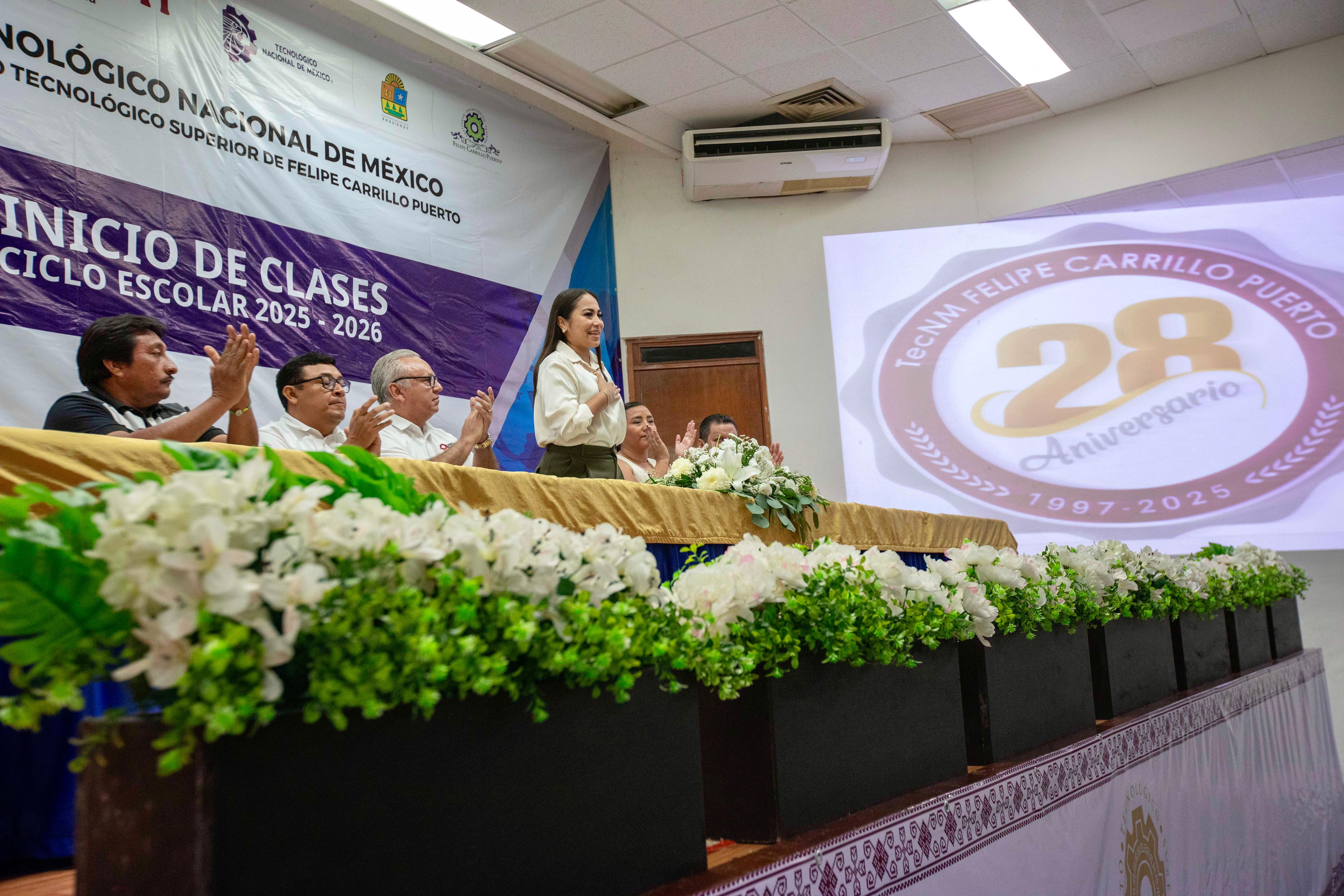 Martes 02 de septiembre de 2025.- La presidenta municipal Mary Hernández encabezó la ceremonia de inicio de clases ciclo escolar 2025 – 2026, así como la celebración del 28 aniversario de la fundación del Instituto Tecnológico Superior de Felipe Carrillo Puerto, acto protocolario que se desarrollo en el auditorio de la casa de estudios.