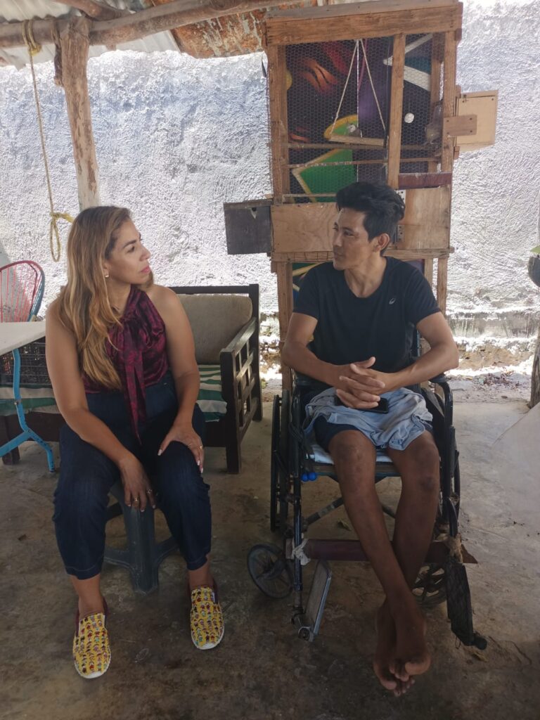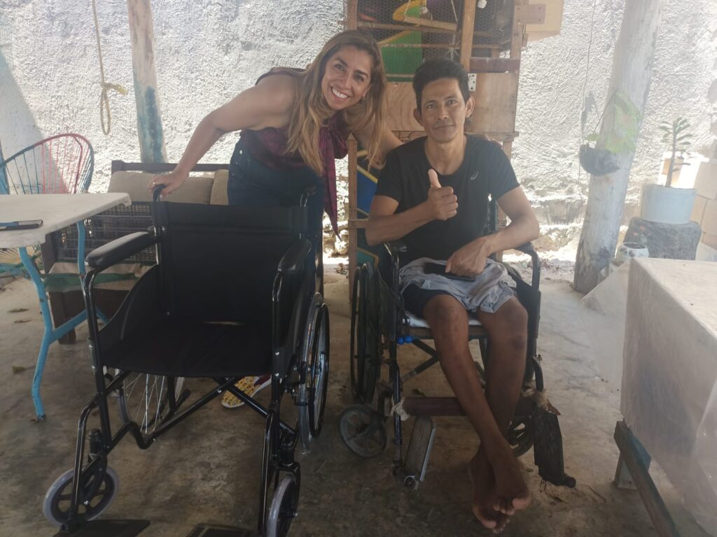 Este sábado, la senadora también realizó la entrega de una silla de ruedas en la colonia Betel a José Luis Ramos Sánchez, un pescador de oficio que hace dos años tuvo un accidente mientras se sumergía a pulmón a más de 42 metros de profundidad, entre Cancún e Isla Mujeres, unas siete veces hasta que perdió el conocimiento debido a la descompresión.