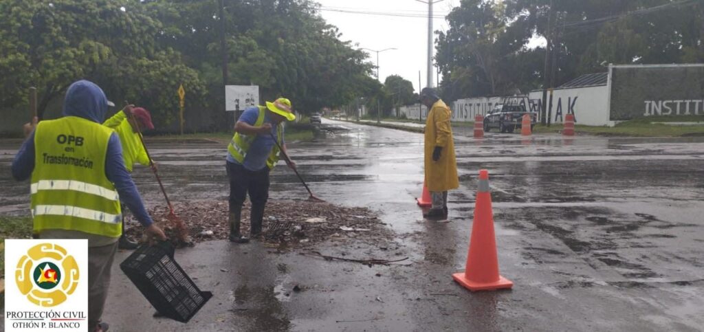 Desde muy temprano las brigadas del Operativo Tormenta, en el que participan Bomberos, Protección Civil, Policía y Servicios Públicos de Othón P. Blanco, se encuentran activas y en territorio realizando la limpieza de vialidades y alcantarillas, poda y recoja de residuos verdes, así como el desazolve manual y mecanizado de pozos de absorción y del sistema de desagüe pluvial en general.