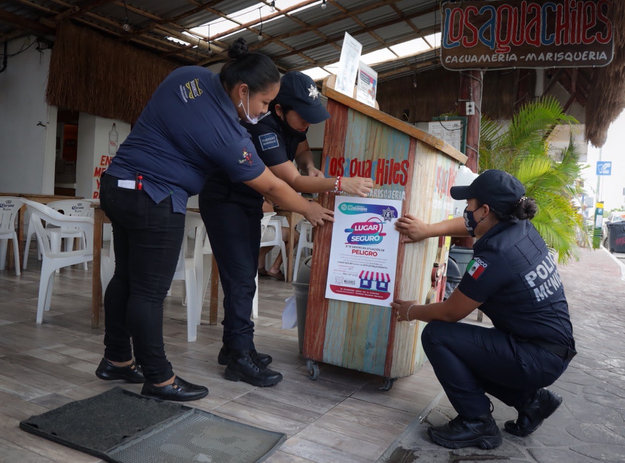Mujeres policías salen a las calles de Solidaridad para reforzar campaña junto a iniciativa privada