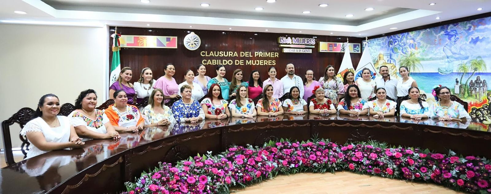 Isla Mujeres.-La gobernadora Mara Lezama Espinosa clausuró hoy el Primer Cabildo de Mujeres y tomó protesta a las Mujeres Embajadoras por la Paz, organizaciones que se suman y contribuyen en la construcción de soluciones que beneficien a Isla Mujeres y a Quintana Roo.