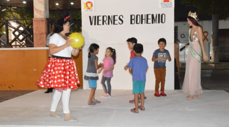 Chetumal, Q. Roo, a 29 de abril.- Las noches de viernes siguen deleitando a locales y visitantes en la Explanda de la Bandera, actividad artística que promueve el Ayuntamiento de Othón P. Blanco presidido por Yensunni Martínez Hernández, a través de la dirección de cultura y artes que organizó el programa “Viernes Bohemio”, ahora con un pequeño homenaje en el marco del mes de la y el niño, a la joven Jezel Avilés, quien desde los 14 años de edad es una entusiasta cantante.
