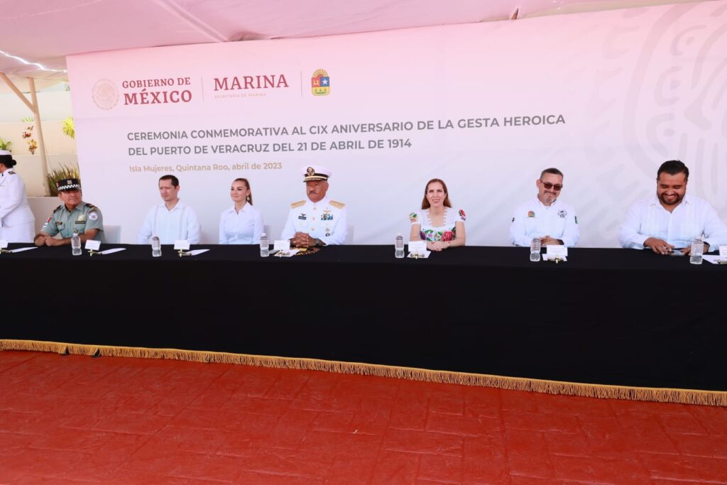 ISLA MUJERES, 21 DE ABRIL DE 2023.- La presidenta municipal Atenea Gómez Ricalde, asistió a la ceremonia conmemorativa por el 109 aniversario de la Gesta Heroica del Puerto de Veracruz del 21 de abril de 1914.