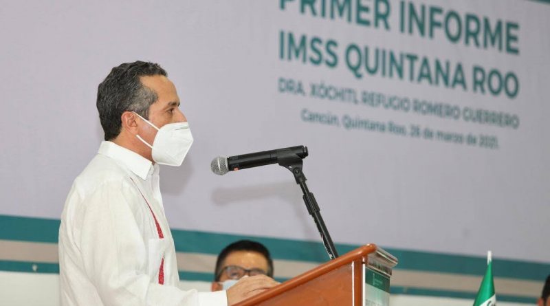Durante el primer Informe de Actividades de la titular de la Unidad de Operación Administrativa Desconcentrada-IMSS Quintana Roo, doctora Xóchil Romero Guerrero, el gobernador Carlos Joaquín reconoció la labor de los integrantes del Seguro Social en Quintana Roo quienes con su dedicación, patriotismo y solidaridad han ayudado a salvar vidas.
