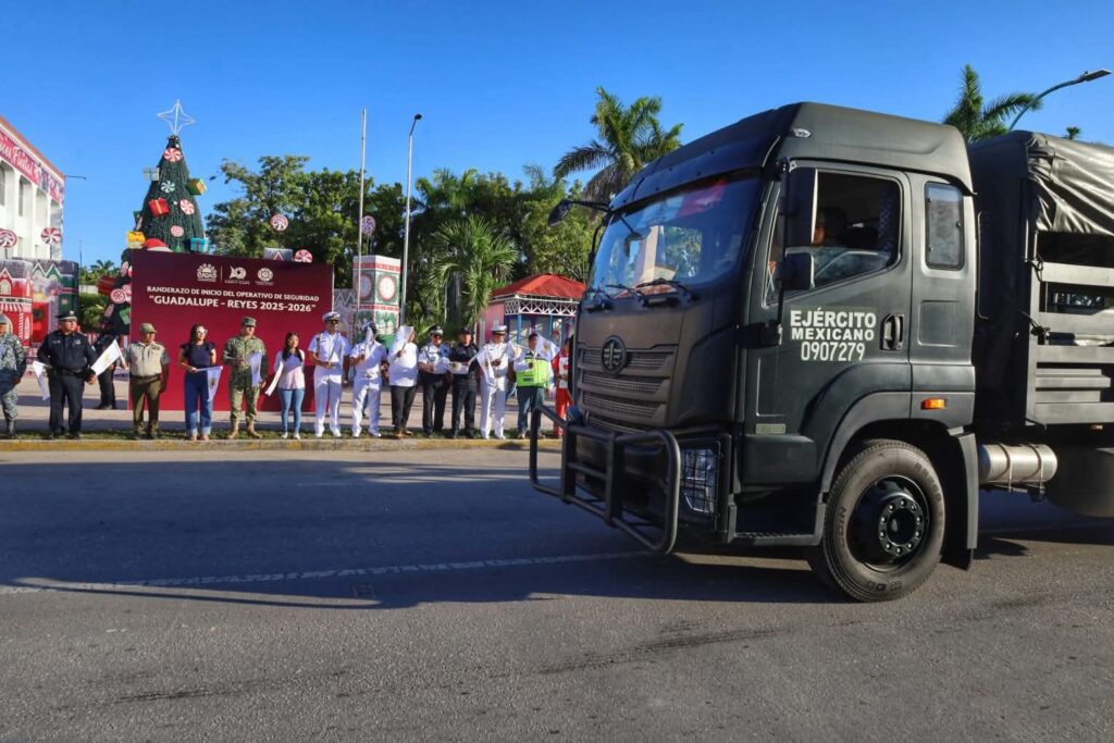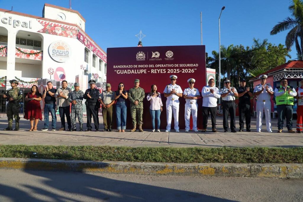 CHETUMAL, 11 de diciembre. La presidenta municipal de Othón P. Blanco, Yensunni Martínez Hernández, encabezó el banderazo de inicio del Operativo de Seguridad Vacional Guadalupe Reyes 2025-2026, en el cual se desplegaron más de 100 elementos, así como unidades terrestres y marítimas de las instituciones de seguridad, emergencia y rescate de nivel municipal, estatal y federal, que durante estas fechas decembrinas y de fin de año trabajarán en estrecha coordinación para cuidar a la ciudadanía y visitantes, con el firme objetivo de salvaguardar su vida, su integridad y seguridad.