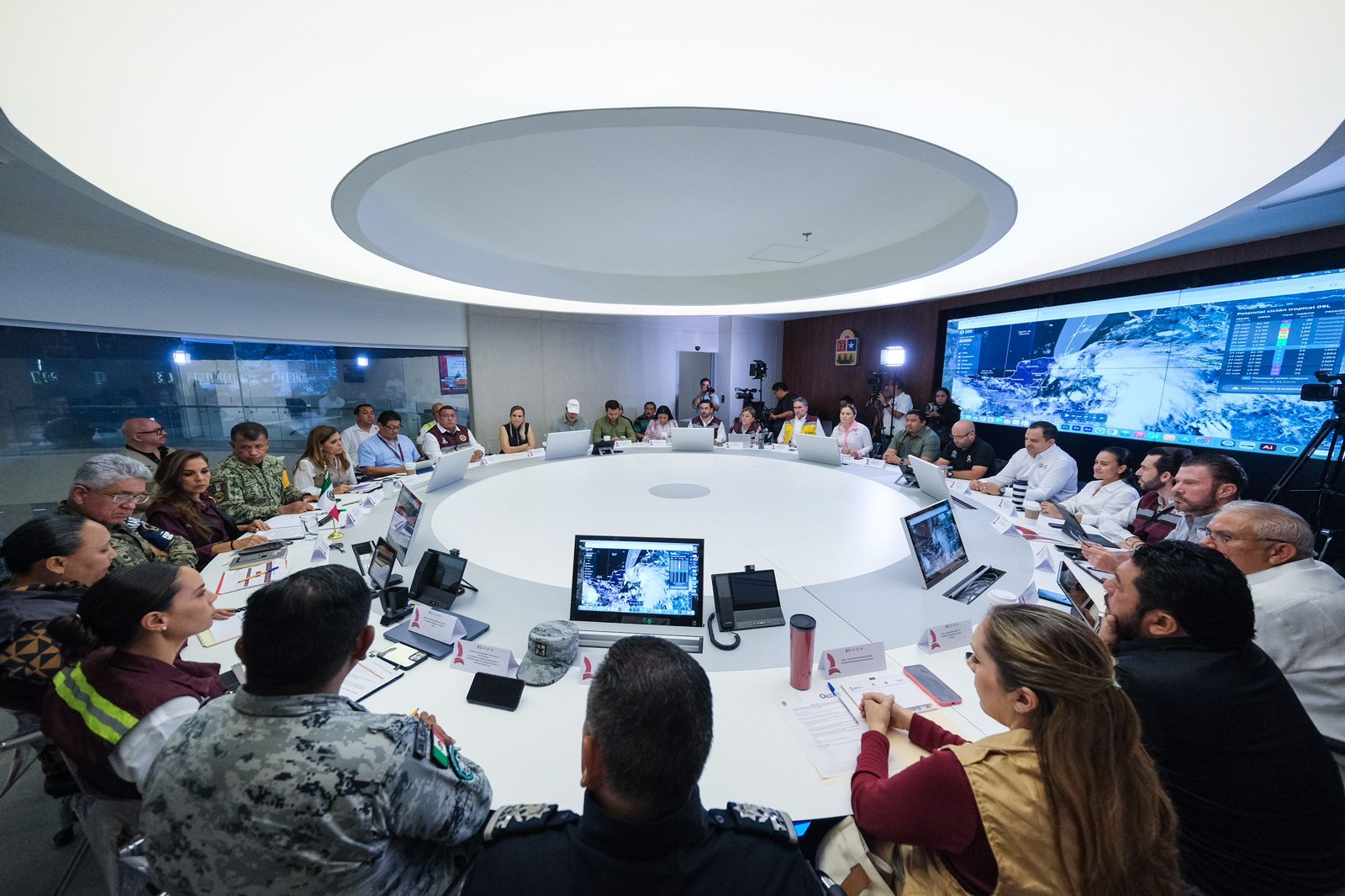 Cancún.- Para coordinar el apoyo a las personas ante la presencia del potencial ciclón tropical 9 en el Mar Caribe, la gobernadora Mara Lezama Espinosa presidió la Sesión Extraordinaria del Consejo Estatal de Protección Civil para la atención y seguimiento del fenómeno.