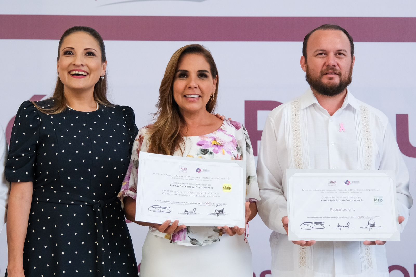 Al dirigirse a los presentes en el evento, la titular del IDAIPQROO puntualizó que así es como con hechos se demuestra la firmeza de transparentar el Gobierno. “Somos garantes de que la información esté a la vista de todas y todos por la voluntad expresa de rendir cuentas claras. Hoy cada quintanarroense puede tener la plena certeza que en temas de transparencia no hay excepción alguna en la aplicación de la Ley”, dijo.