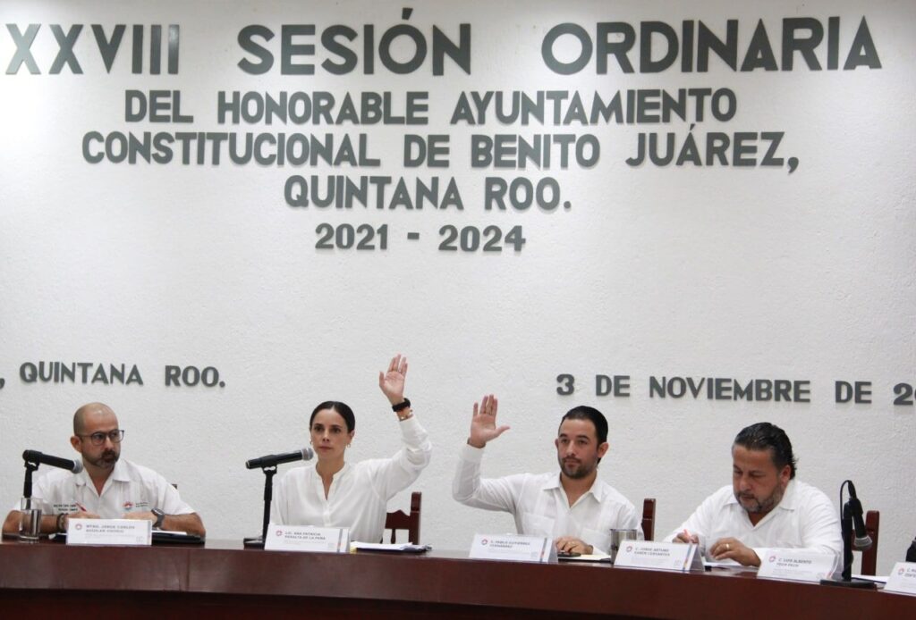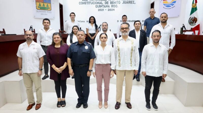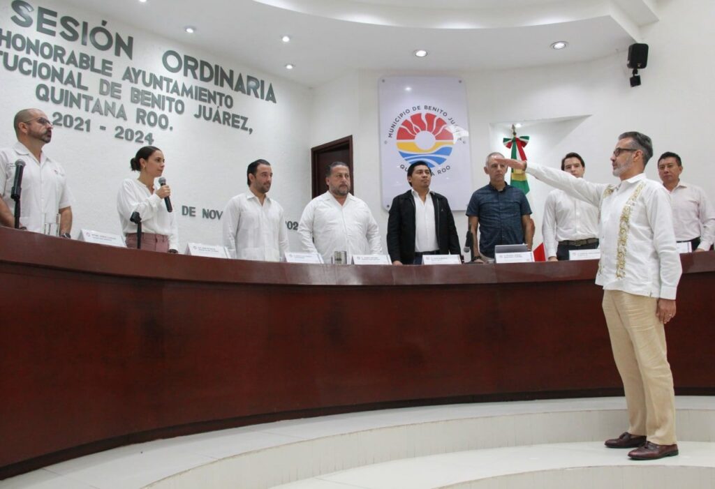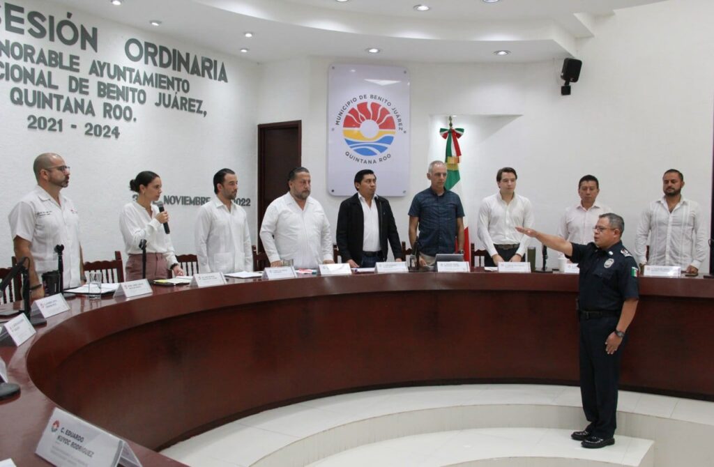Cancún, Q.R., a 03 de noviembre de 2022.- Durante la Vigésima Octava Sesión Ordinaria, encabezada por la Presidenta Municipal Ana Patricia Peralta, el Cabildo de Benito Juárez ratificó por unanimidad y tomó la protesta de ley a José Pablo Mathey Cruz, como secretario de Seguridad Pública y Tránsito, con la encomienda de trabajar en favor de los cancunenses.
