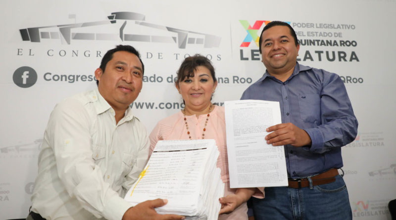 Cancún, Quintana Roo. – Los diputados Emiliano Ramos Hernández y Eugenia Solís Salazar, recibieron una iniciativa ciudadana presentada por un grupo de 50 personas encabezados por Esquivel Cruz González, para reformar la Ley de Cuotas y Tarifas de Agua Potable del Estado de Quintana Roo.