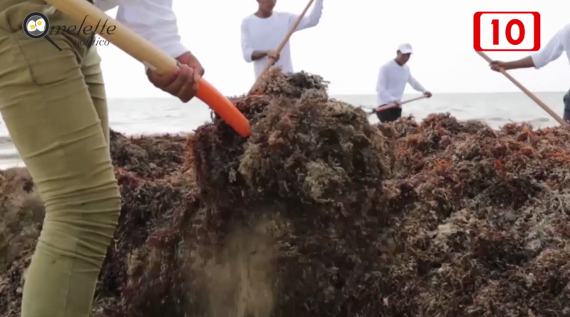 Recoleccion de sargazo en playas de Tulum - Omelette Político