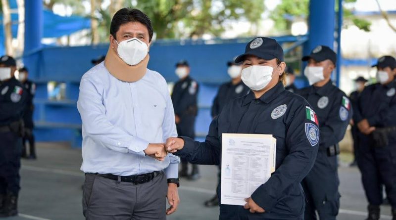 Durante el evento que se llevó a cabo con todas las medidas de salud y sana distancia en el domo del parque Dos Aguas, estuvieron presentes, el Director General de Seguridad Pública, Nésguer Vicencio Méndez; el secretario general del ayuntamiento, Enrique Rodríguez Luna; el primer regidor Keyvin Alegría Santuario y el tesorero municipal, Edgardo Díaz Aguilar, quienes de igual forma reconocieron a los elementos y los felicitaron en el marco del Día del Policía.