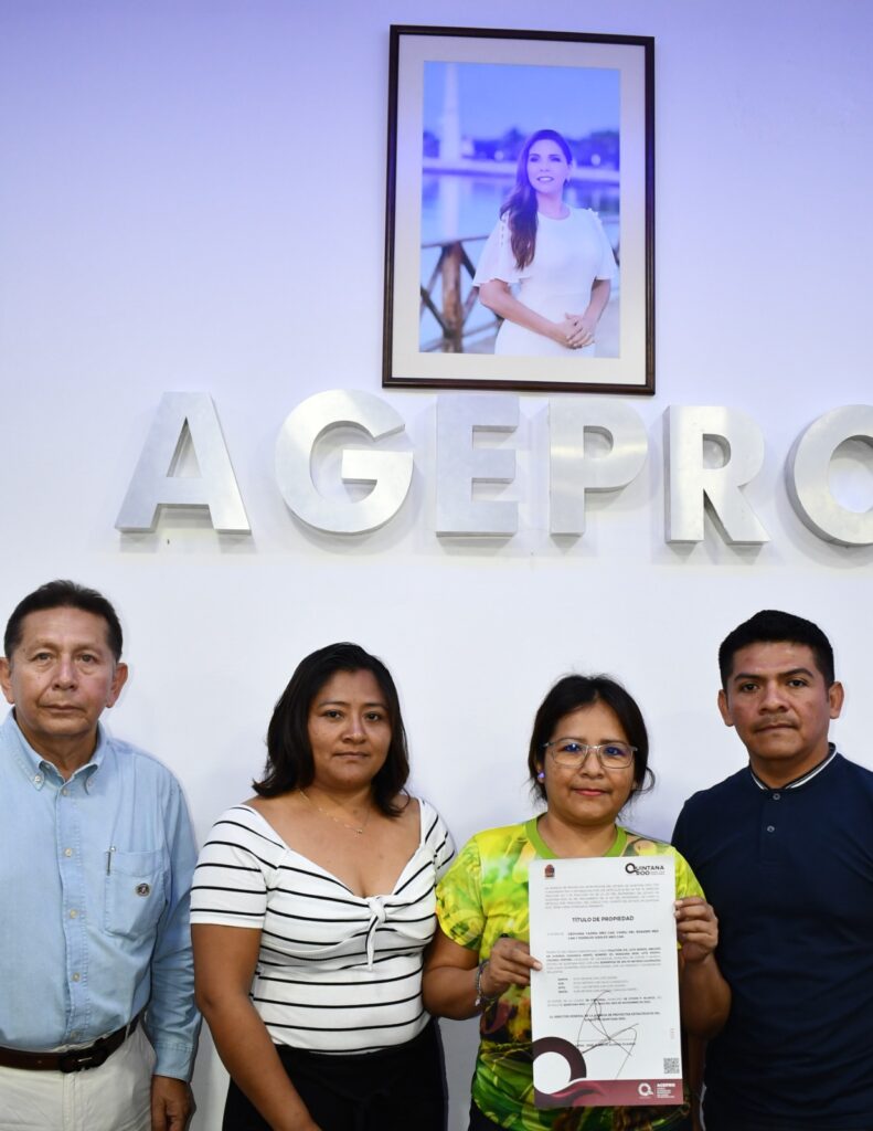 En este marco, las beneficiarias fueron Geovana Yadira Mex Can, Yamili del Rosario Mex Can y Rodolfo Adolfo Mex Can, quienes manifestaron que tras 14 años de realizar trámites en diferentes instancias, hoy, gracias a las gestiones de AGEPRO y al respaldo de la administración de la gobernadora Mara Lezama, finalmente recibiero su título de propiedad, logrando con ello la tranquilidad y seguridad jurídica para su familia.