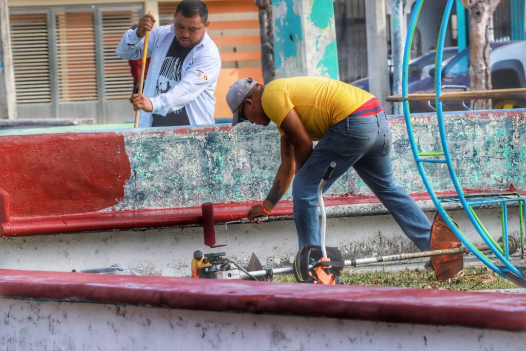 Señaló que esta obra, contempla la soldadura o el cambio de algunos juegos infantiles, el resane de algunas partes de concreto, la pintura de la cancha y la rehabilitación de los tableros y canastas de basquetbol.