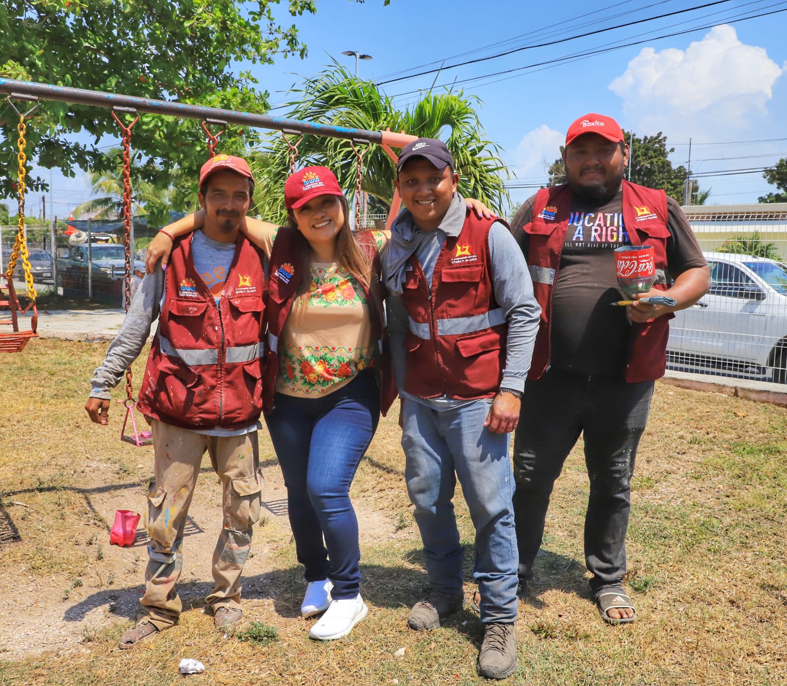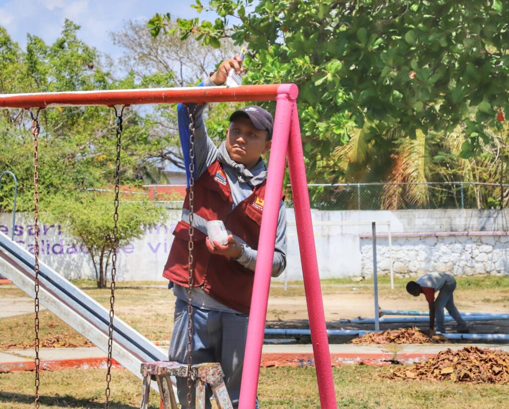 Agregó que los trabajos realizados este día, consisten en la rehabilitación de juegos, soldadura y reparación de la cancha y canastas, así como las porterías de un campo de futbol infantil, pintura de todo el parque, y limpieza en general, todo realizado con recurso propio y mano de obra del Ayuntamiento de Othón P. Blanco.