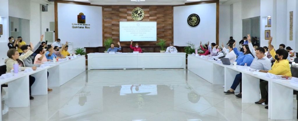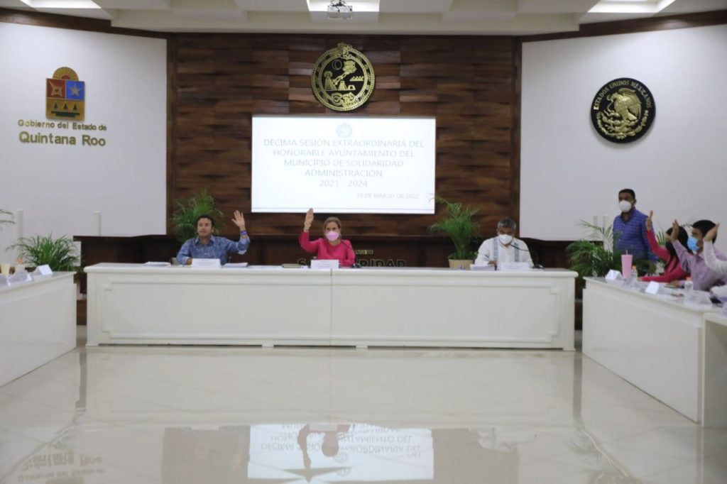 En el marco de la Décima Sesión Extraordinaria, el Cabildo de Solidaridad, encabezado por la presidenta municipal, Lili Campos Miranda, aprobaron la próxima realización de un nuevo programa de estímulos fiscales, el cierre de los ejercicios de egresos e ingresos del 2021 y la convocatoria a elecciones para la alcaldía de Puerto Aventuras, en otros puntos.