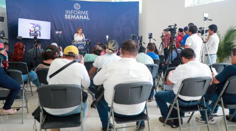 Playa del Carmen, Solidaridad, 22 de febrero del 2023.- Durante su informe semanal, la presidenta municipal de Solidaridad Lili Campos destacó que serán 327 cámaras conectadas al C2 las que reforzarán los operativos de vigilancia y reacción rápida, a través del monitoreo permanente en puntos estratégicos de la ciudad, y el cual ya presenta un avance del 90 por ciento de remodelación y rehabilitación.