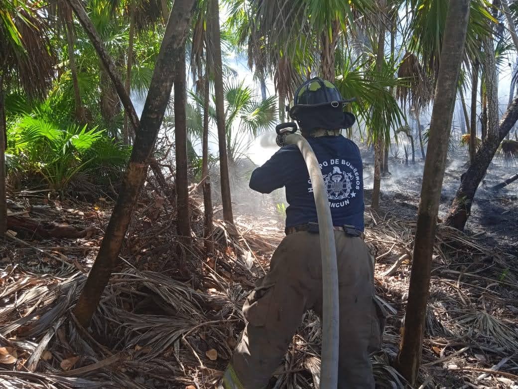 Elementos de Protección Civil Isla Mujeres lograron sofocar el primer conato de incendio forestal de la temporada 2021.