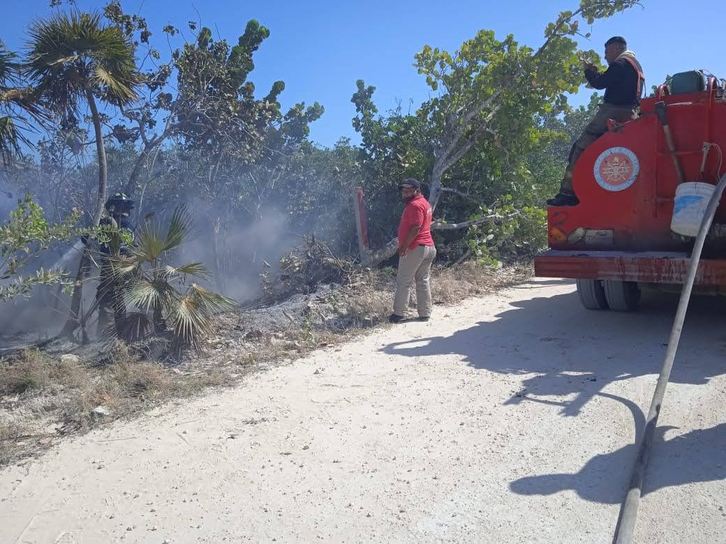 “Afortunadamente la rápida acción coordinada entre los elementos de Protección Civil Isla Mujeres y Bomberos Cancún, ayudó a que pudiéramos controlar a tiempo este siniestro, que no pasó a más” agregó “lo que se quemó fueron arbustos y vegetación baja por lo que pudimos controlarlo en aproximadamente tres horas”.