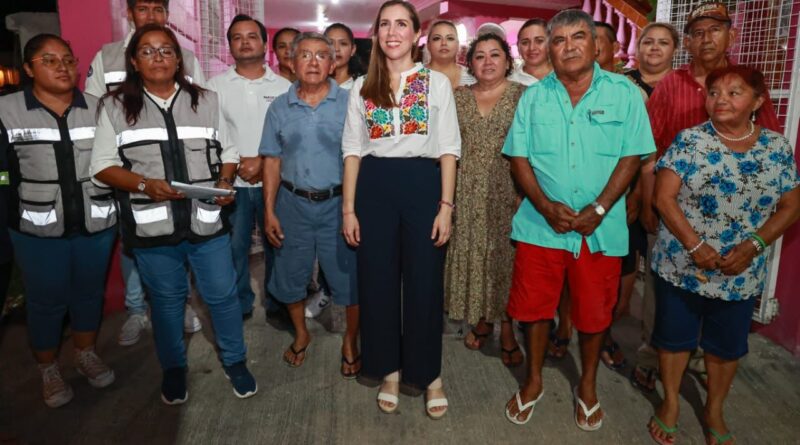 Isla Mujeres, Quintana Roo a 30 de agosto de 2023. -La Presidenta Municipal, Atenea Gómez Ricalde, supervisó los trabajos de cambio de lámparas antiguas por nuevas luminarias led, que se realizaron en la colonia Salina Chica, con el compromiso de optimizar el alumbrado público, eficientar los recursos y reforzar la seguridad en esa zona.
