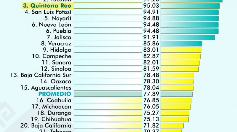 Read MoreAsciende una posición respecto a 2020 al elevar el puntaje de 94.4 a 95.03, En el 2016 estaba en la posición 22 se avanzó 19 lugares hasta lograr el tercer lugar a nivel nacional