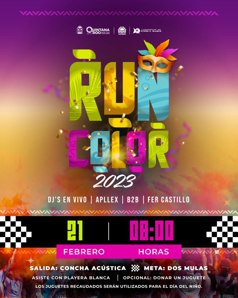 El director de servicios públicos municipales Luis Mario Ramírez Campos, anunció que la carrera de colores, se realizará como ya es tradición en el Boulevard Bahía de la ciudad capital, iniciando a las 8 de la mañana en “El Faro”, pasando por cinco puntos de colores, y finalizando con la meta en el balneario “Dos Mulas”.